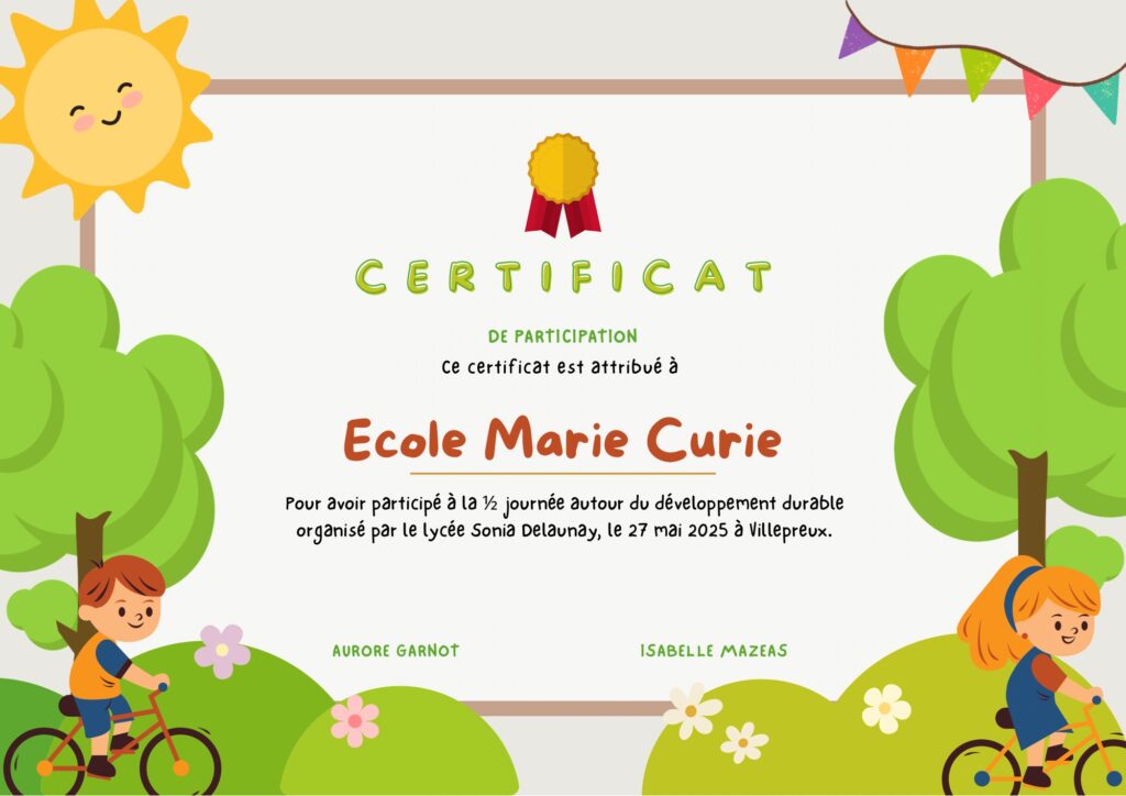 La matinée s’est terminée par la remise d’un certificat attestant de la participation des élèves de l’école Marie Curie à nos ateliers.