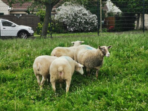 C’est avec un très grand plaisir que nous accueillons depuis mardi 30 avril quatre nouvelles pensionnaires sur nos espaces verts ! Il s’agit de quatre brebis, trois de race Romane et une de race Berrichonne du Cher provenant de la ferme de plaisir-Grignon dans le cadre du projet d’éco-pâturage financé par la région Iles de France depuis maintenant 4 ans !