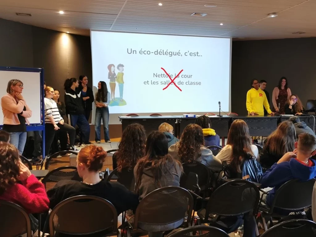 Chaque année, de nouveaux élèves sont élus éco-délégués ou se portent volontaires. Ces nouveaux éco-délégués sont formés aux rôles et aux missions d’un éco-délégué courant novembre, par d’anciens éco-délégués déjà formés et volontaires.
